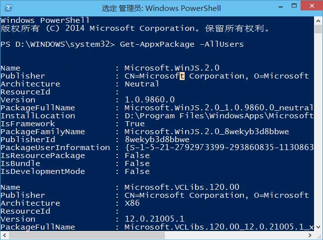 回车运行,等待运行完毕即可把Win10系统所有的Metro应用卸载掉了。
