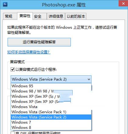 你会看到“兼容模式”显示的正是刚才的建议的兼容性设置。所以,如果你很清楚之前该程序能够在哪个版本的操作系统中正常运行,那么也可以不经过上面的那些“兼容性疑难解答”的复杂步骤,而是在这里勾选“以兼容模式运行这个程序”,然后选择能够正常运行该程序的那个操作系统版本即可。