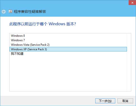 如果其他选项没有你遇到的问题,则选择“问题列表没有包含我的问题”,点击“下一步”,就会询问“此程序以前运行于哪个Windows版本”。如图: