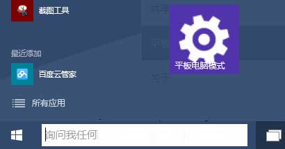 点击该图标即可把“平板电脑模式”设置项固定到Win10 Build 10041开始菜单中。效果如图: