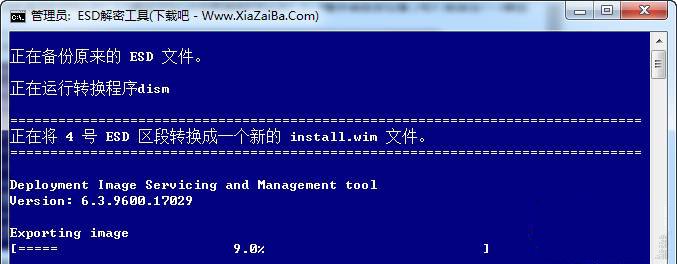 ESD格式的文件时微软在Windows8开始使用的一种新的系统映像文件压缩格式,比WIM又更高的压缩率,但目前仅有DISM支持ESD文件的处理。另外,绝大多数的ESD文件都是加密的,DISM还无法直接处理。所以,最好的方法就是将ESD文件解密之后转换成WIM或包含WIM的ISO格式映像文件。