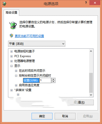 点击“显示”左侧的加号,即可看到“控制台锁定显示关闭超时”设置项,默认是 1 分钟,你可以设置为更长的时间,据艾薇百科试验,如果想让设置成永不关闭,应该设置成 0 吧,但是我这个试验时间并不长,所以还请自行试试吧。