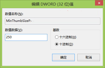 把该值重命名为“MinThumbSizePx”,然后双击MinThumbSizePx值,打开“编辑DWORD(32位)值”窗口。如图: