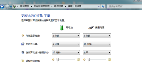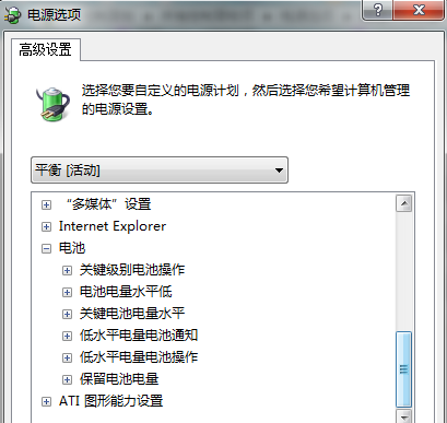 3. 在出现的win7旗舰版电源选项对话框中,咱们向下滑动滑块,之后找到‘+电池’选项,点击‘+’展开。