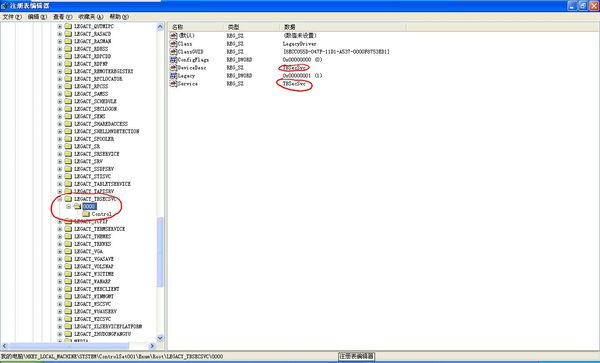 图二:Root里有一个“LEGACY_TBSECSVC”的文件夹;0000里有两个。