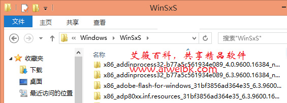 如果你打开Win8.1系统盘下的WinSxS文件夹(路径为:C:/Windows/WinSxS),你就会发现其中有许多名称类似的文件夹,它们就是不同历史版本的同一个应用的更新备份文件。例如我们经常更新的Adobe Flash player,你在WinSxS文件夹就能看到多个更新备份文件。如图: