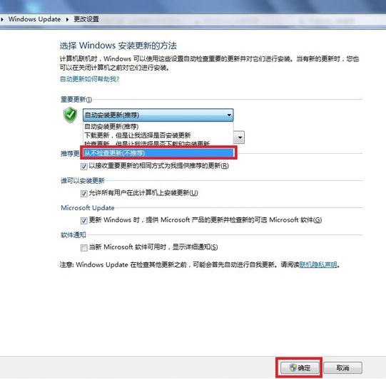 出现提示“配置windows失败 ,还原更新,请勿关机” 后强制重新启动电脑(长按电源键然后再按一下),然后会有好多项选择,第一项一般是“正常启动” 最后一项是“最后一次正确配置”,选择“最后一次正确配置”(有的电脑可能提示的不一样),然后进入系统,进去以后,就更改一下设置,打开控制面板,进入“系统安全”,再点击“Windows Update”,单击左侧的“更改设置”,然后选择“从不检查更新”,最后点击“确定”按钮