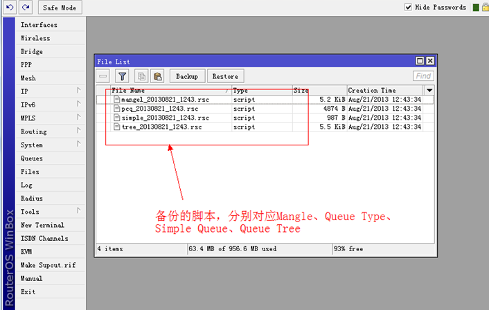 A1:需要注意导入脚本前最好备份Ros路由器设置,可点击Ros路由器上File—backup备份。