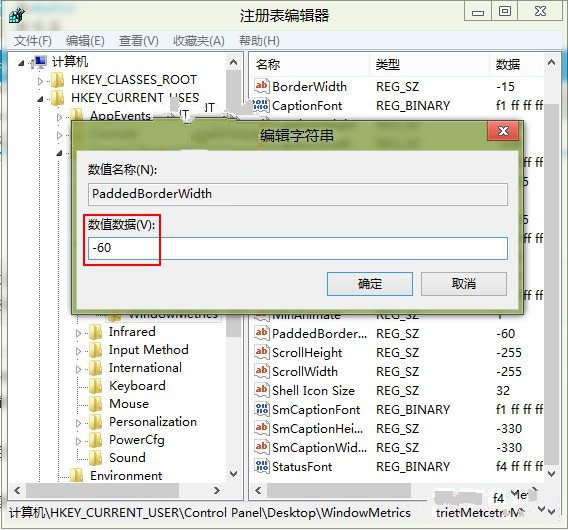 打开“注册表编辑器”定位到“ HKEY_CURRENT_USER/Control Panel/Desktop/WindowMetrics”。