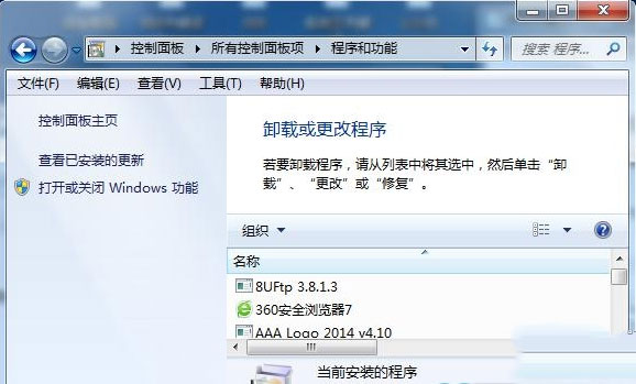 1、调出控制面板,然后在控制面板上点击“程序”,再双击“打开或关闭Windows服务”;