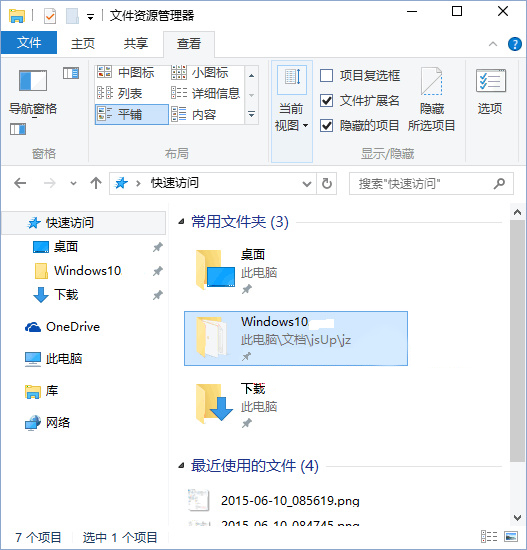 不用管它,拖动到想要改变顺序的位置,例如“下载”文件夹的上面,松开鼠标左键或抬起手指(触控操作),这时你会发现,Windows文件夹已经跑到“下载”文件夹前面了,不光是左侧导航窗格中的“快速访问”排序,而且右侧窗口中的“常用文件夹”排序也同时发生变化了。如图: