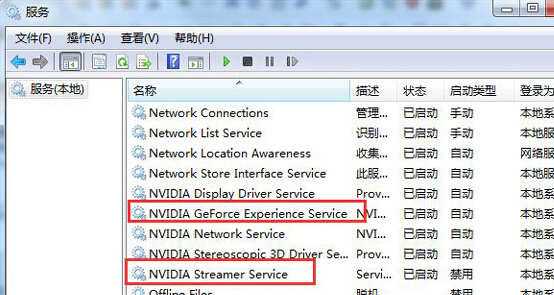 3.接下来,咱们再次打开win7旗舰版电脑的运行窗口,然后输入services.msc并单击回车,在打开的服务窗口中,咱们找到右侧窗口中的“NVIDIA Streamer Service”服务和“NVIDIA GeForce Experience service”两项,分别双击打开这两个选项,在弹出来的窗口中,将它们的启动类型设置为禁用,然后点击服务状态中的停止按钮-应用-确定就可以了。