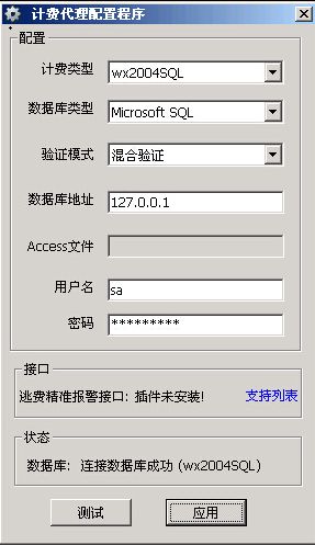 2) 在计费软件服务器上安装计费代理工具,设置好数据库参数连上计费数据库,并连接上网维大师游戏更新服务器;