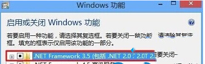 3、然后在Win8系统Windows功能窗口上,点击“.NET Framework 3.5“,再点角定按钮进行安装;