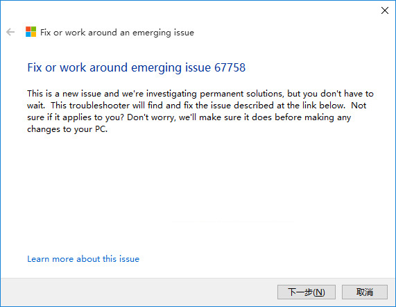 你会看到微软给设置打不开的问题取了一个代号 Issue 67758 。