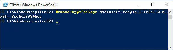 Remove-AppxPackage Microsoft.People_1.10241.0.0_x86__8wekyb3d8bbwe