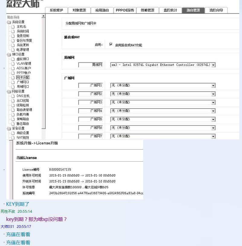 而且局域网的网卡接口显示的是em3,而应用路由里显示的是em0,按照到期的说法来看,应该是到期后应用路由做了某些限制导致的,实际上不充值,简单的上网功能应该也是正常的……