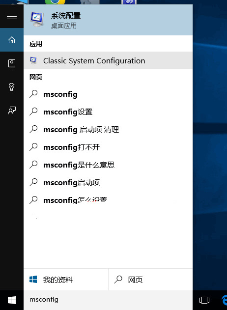 而点击下面的搜索结果“应用”下的“Classic System Configuration”打的即是经典“系统配置”窗口。