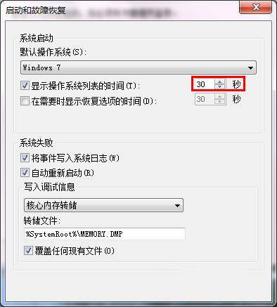 在高级选项卡下的”启动和故障恢复“处单击设置。