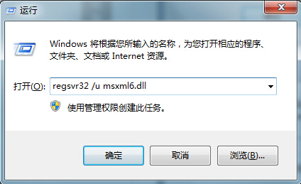 3、按键盘“WIN+R”键打开“运行”,输入regsvr32 /u msxml6.dll,然后“确定”;再次打开运行输入regsvr32 msxml6.dll,然后“确定”。