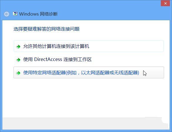 选择要疑难解答的网络连接问题为“使用特定网络适配器(例如,以太网适配器或无线适配器)”。