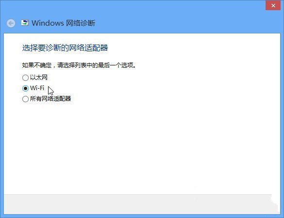 选择要诊断的网络适配器为“Wi-Fi”,然后点击下一步。