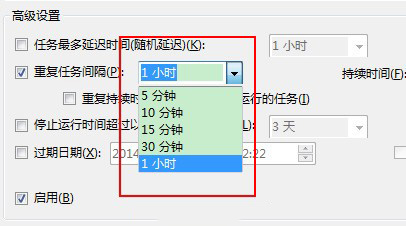 特别说明:我差点被骗了,认为Windows计划任务是精确不到分钟级别的,主要是看到“重复时间间隔(P)”右边没有“1分钟”选项,如下图所示: