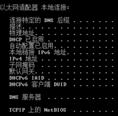 3.系统版本不同,导致命令行显示也不同,比如ipconfig/all,简体XP中显示为【Ethernet adapter 本地连接:】,而简体WIN7显示却是【以太网适配器 本地连接:】
