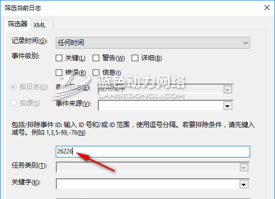 在中间的事件ID输入框中输入磁盘检查的ID号26226 (Win7中的磁盘检查事件ID则为 1001),点击“确定”,这时就会在“事件查看器”主窗口中显示所有的磁盘检查事件。如图: