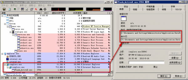 此时会在不经过用户任何同意的情况下执行一个名为Flash_ActiveX.exe的进程,看名字还以为是adobe官方的,其实不然。此程序会下载一些木马程序,关闭一些网吧维护软件的防护程序。