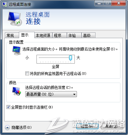 有时候由于更换了显示器,导致分辨率不同,远程桌面工具还停留在以前的分辨率上,不能全屏。