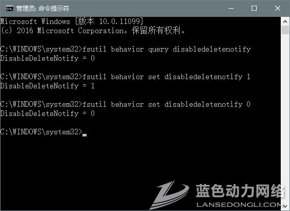 3、如果返回值为“0”证明TRIM已经开启;如果返回值是“1”,则说明当前电脑的SSD尚未开启TRIM。