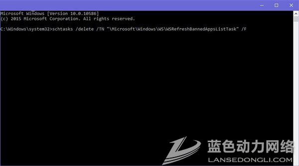 schtasks /delete /TN “/Microsoft/Windows/WS/WSRefreshBannedAppsListTask” /F