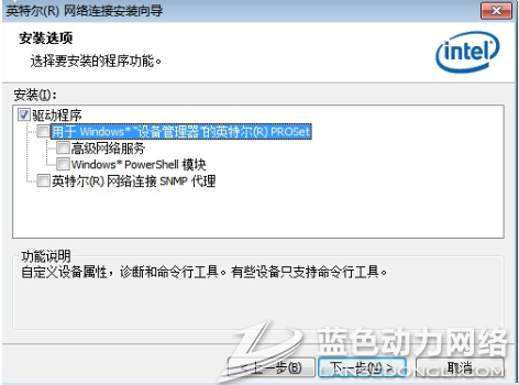 4.客户机开超级进系统后,直接安装附件内下载的网卡驱动,选择网卡高级组件时参考下图设置,安装过程中客户机网卡会出现时而连接时而断开的情况,等候即可,不要再进行别的操作,避免死机,本地安装用时二十五分钟左右,仅供参考;如果出现死机情况,重启再来!
