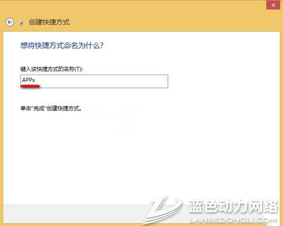 3、输入快捷方式的名称,例如:APPs,点击“完成”,如下图所示: