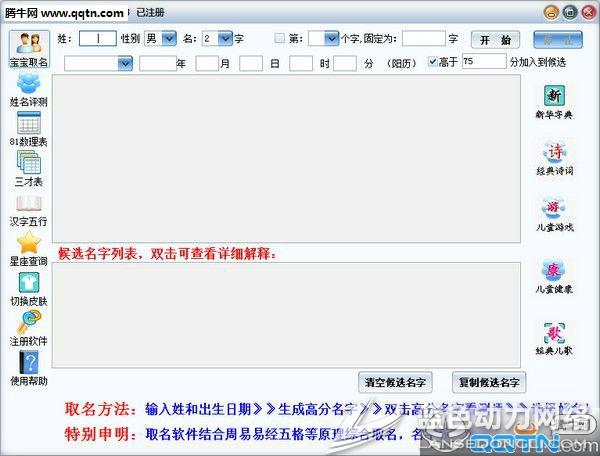 可一次性生成上亿个好名字,用户必须点停止按纽,软件才会停止生成。