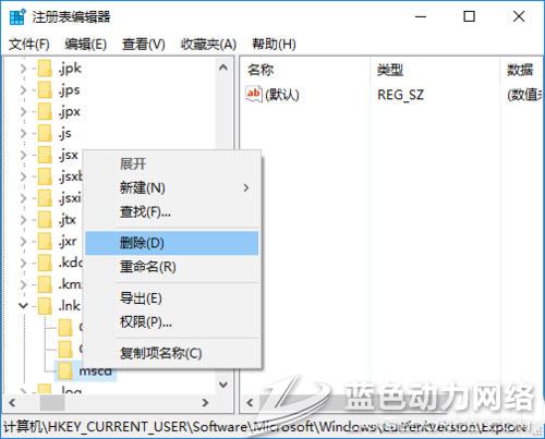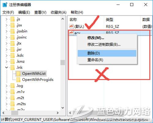4、如果有其他文件夹,把他们全部都删除,右击文件选择删除。只留下openwithlist 和openwithprogids