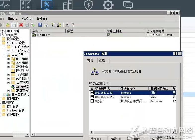 服务端添加IP策略,屏蔽副服务器所有TCP端口导致