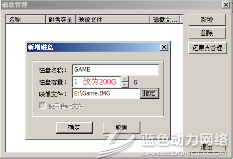 磁盘容量:1 改为你所需要的容量大小(例如改为200);然后点击→确定。