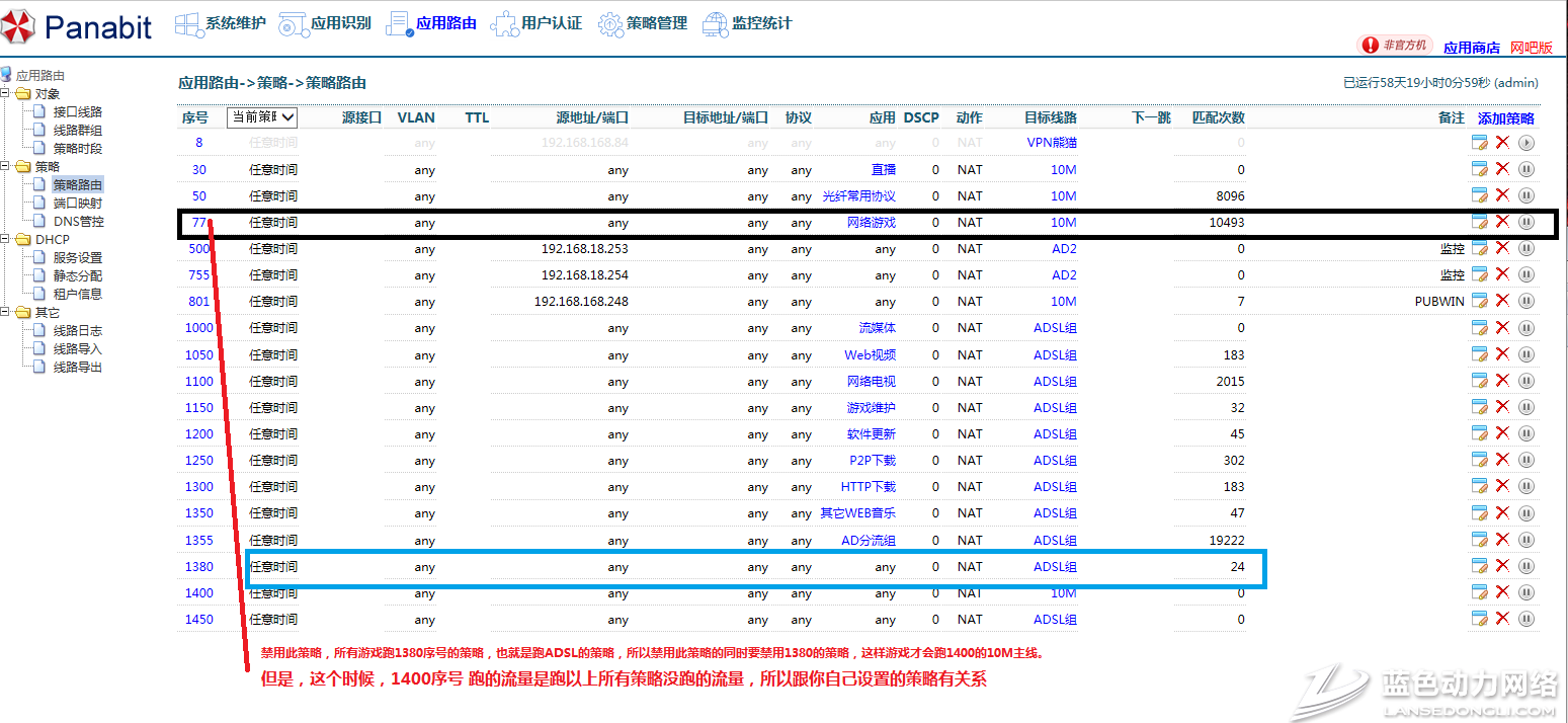 策略上: 排行前面的序号策略优先执行(一般来说,具体根据路由器本身的说明)