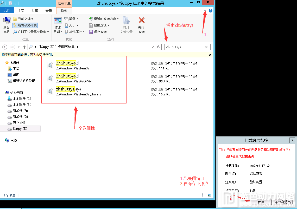 绿化大师,挂盘搜索zhshutsys 不要带后缀名,会搜索到3个文件,直接删除即可。