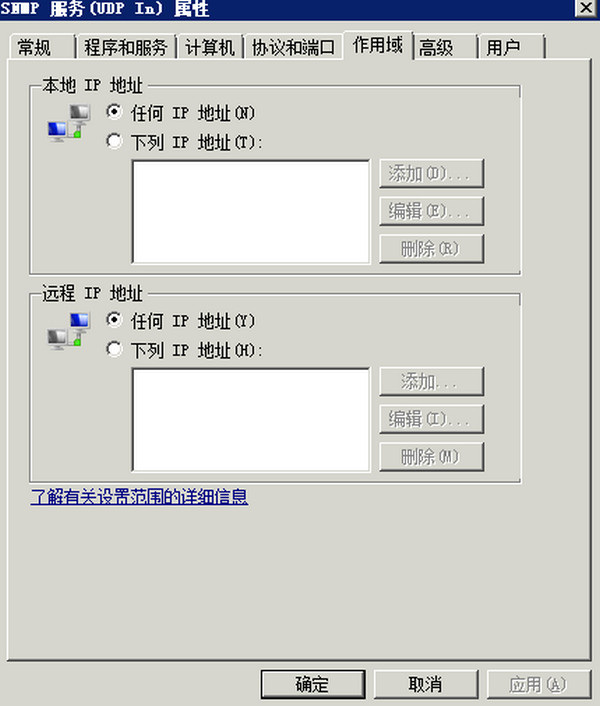 找到上图中snmp服务 都点进去看看,把里面的设置中作用域都改成和下图中小编的一样就可以了,记住2个都要改哦!