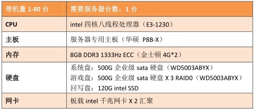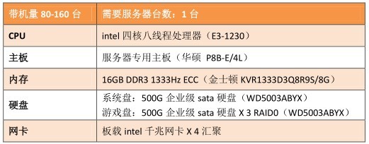 方综案述:“云更新”小型有盘网吧解决方案服务器,小型网吧通常更注重成本控制,在预算有限的情况下,该配置可以满足网吧80台客户机同时连接虚拟盘运行游戏的需要,轻松实现“穿越火线”7秒启动。备注:建议有条件的网吧配置2台同型号服务器,让服务器7x24小时高效稳定运行。