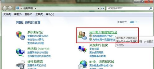 点击“用户账户和家庭安全”。